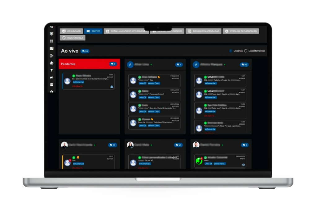 Gestão completa e centralizada dos seus atendimentos no WhatsApp. Monitore toda sua operação em tempo real!